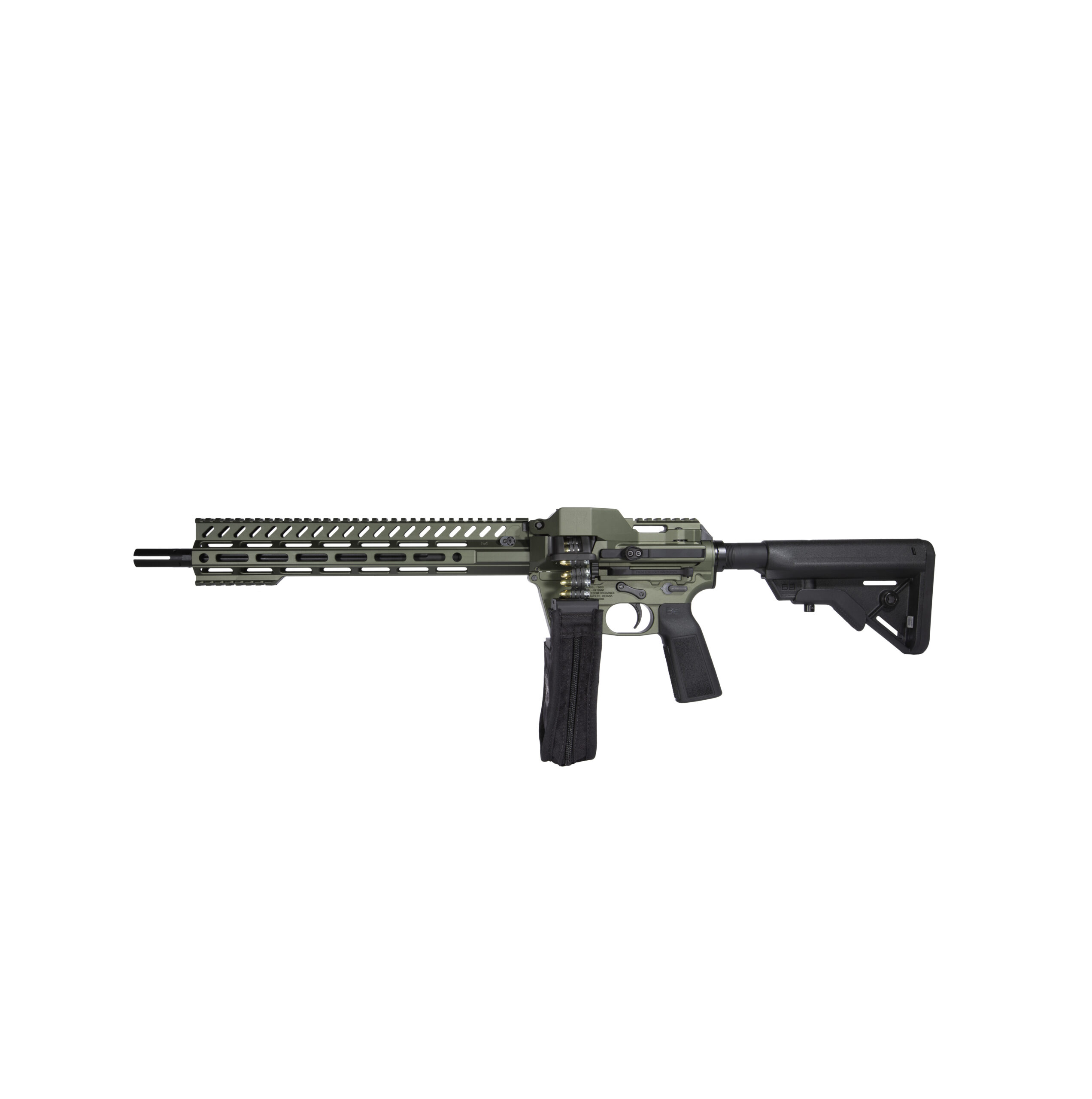 The FM-9 is engineered with cutting-edge, patent-pending technologies, including a one-handed bolt charging/hold-open assist device, last round bolt hold open with Glock-type magazine compatibility, and a belt feed chute and guide device for flawless operation.